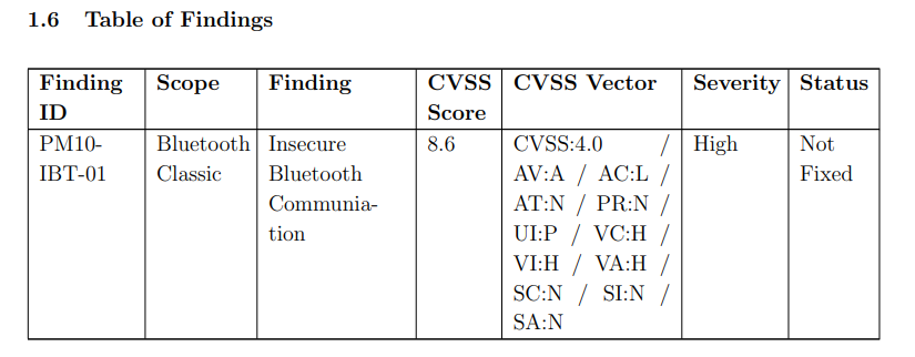 **2.1 PM10-IBT-01: Insecure Bluetooth Communiation**\